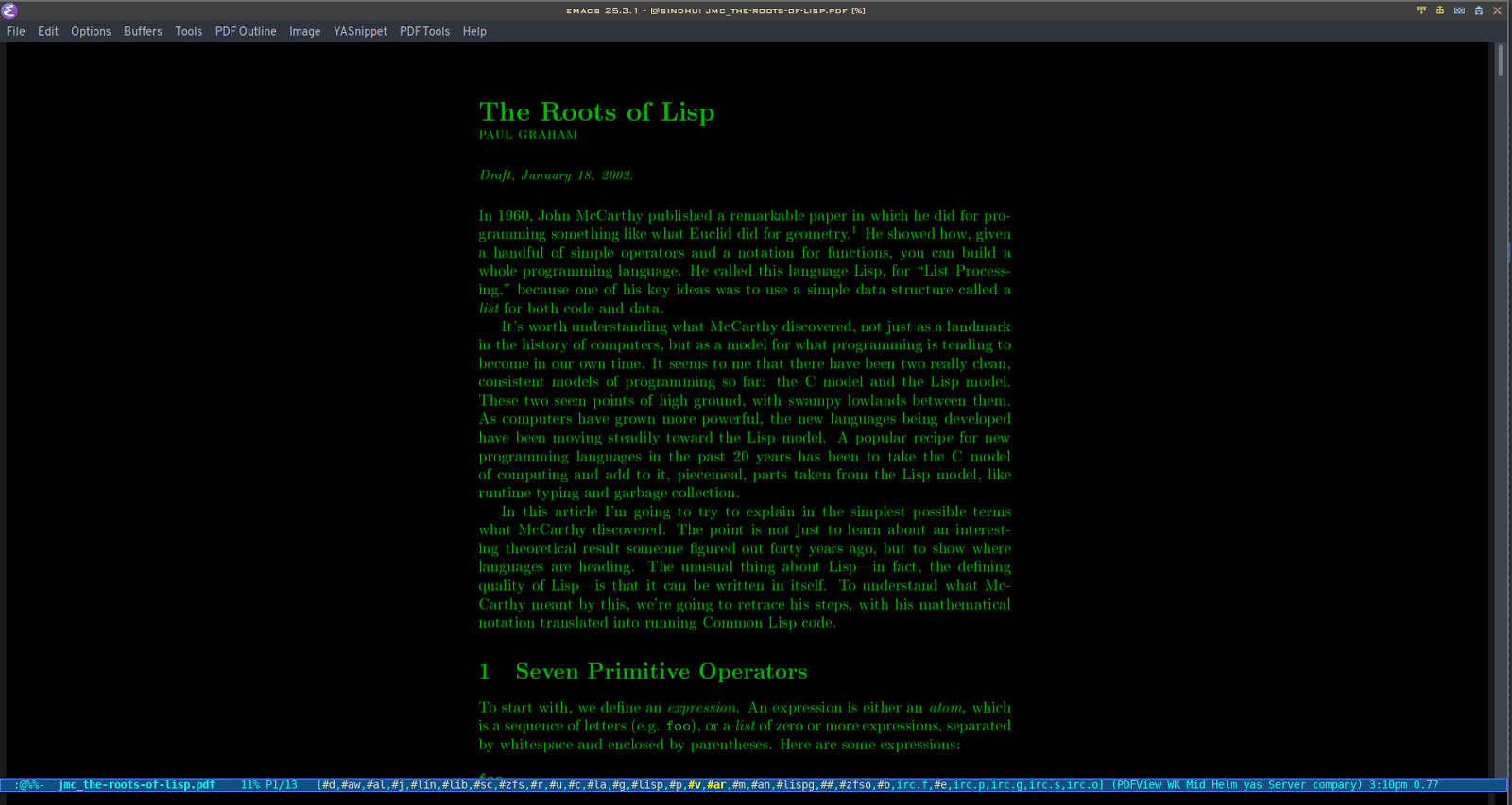 Charles-H. Schulz is not a developeralthough he is technically proficient. He describes himself as specializing in literature, history and philosophy. He's also an Emacs user. I find that interesting because I'm always fascinated with how people who aren't writing code use Emacs and how they took the unlikely step of getting started.